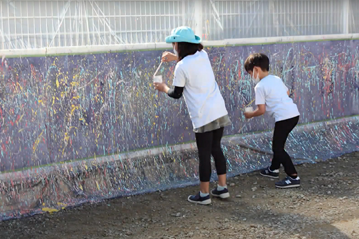 このたび、「アクションペインティング」という手法を用いて、アートの楽しみを体感し、身近に感じられる体験ができる『壁画アート子どもワークショップ』を令和4年11月3日(木・祝)開催しました。