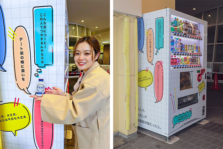 自動販売機のデザイン素材は、『もしも、わたしが自動販売機だったら』セリフ募集ワークショップ等により、それぞれが想像力を活かした様々なセリフを一般から募集し、それをデザイン素材として活用して作成しました。デザインをセリフで募集するユニークでアートなコンセプトに仕上がっています。